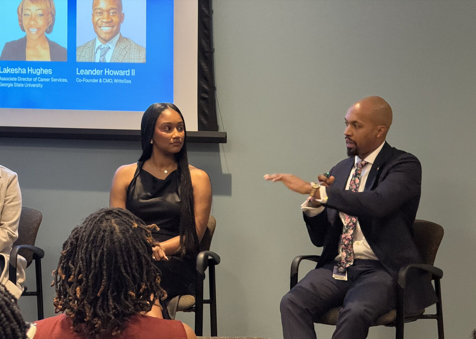 Donnie Beamer speaking at Get Hired Atlanta with the team at WriteSea